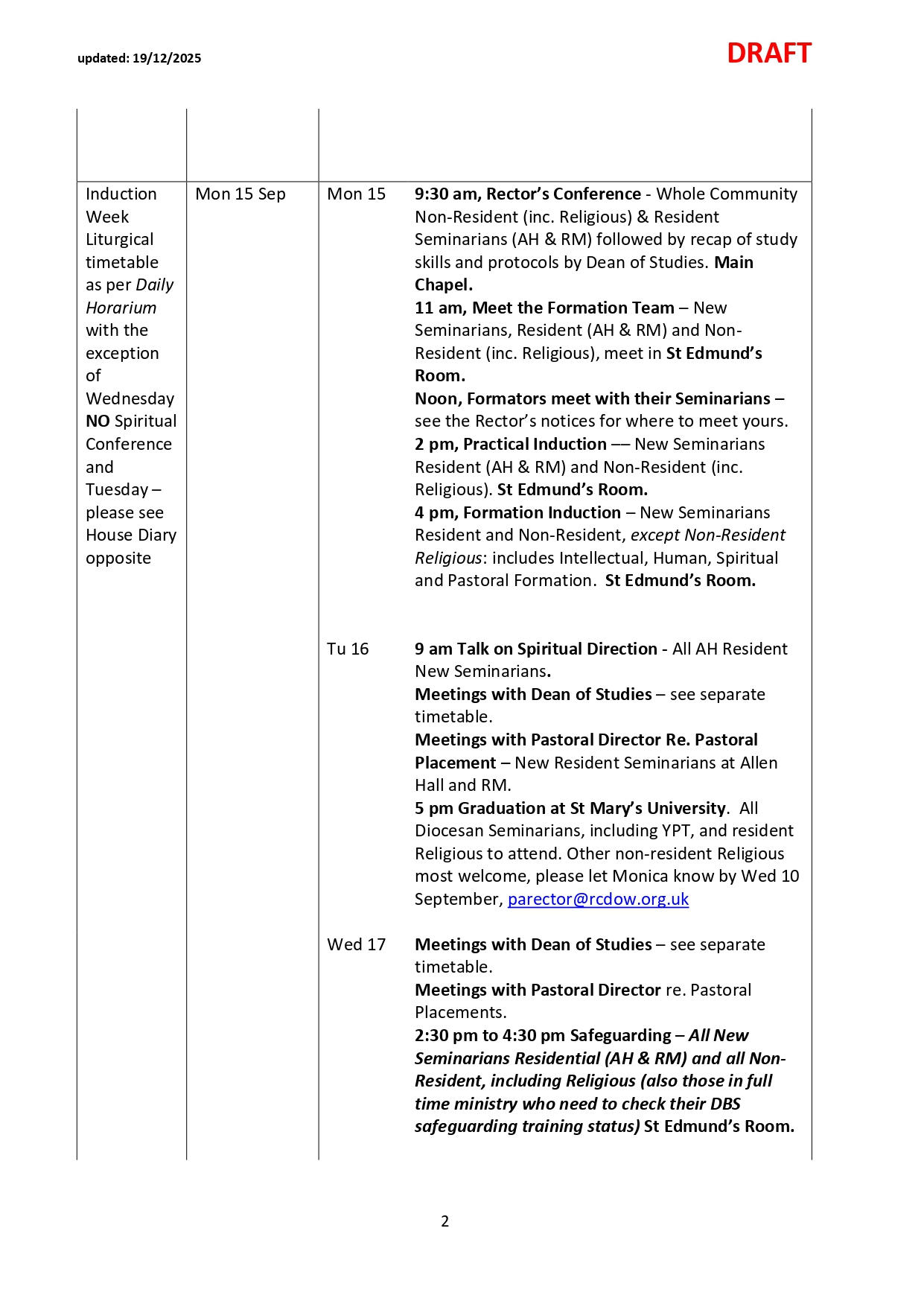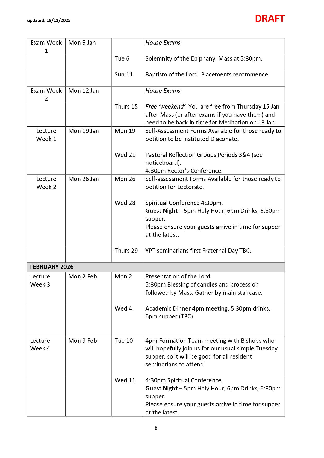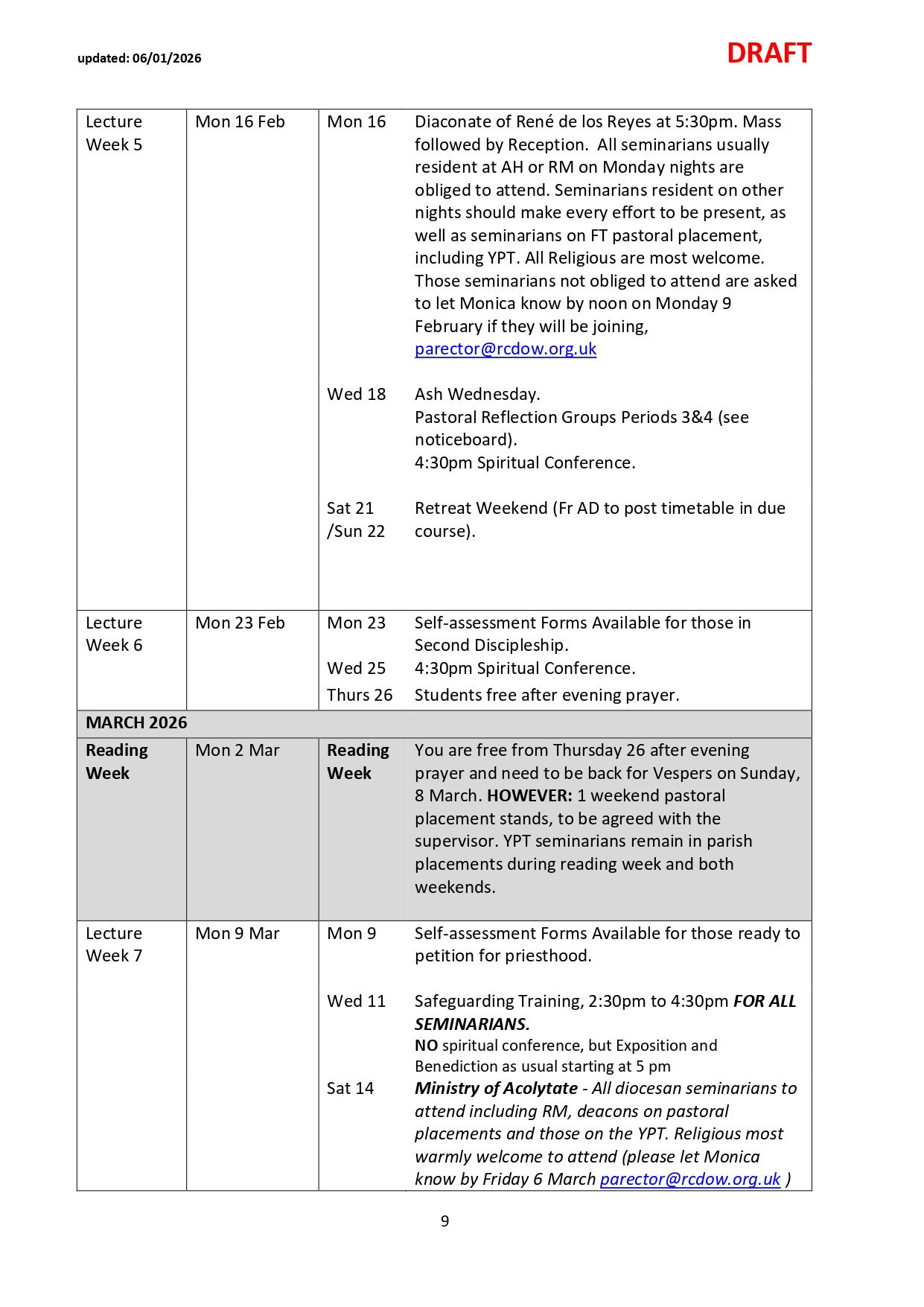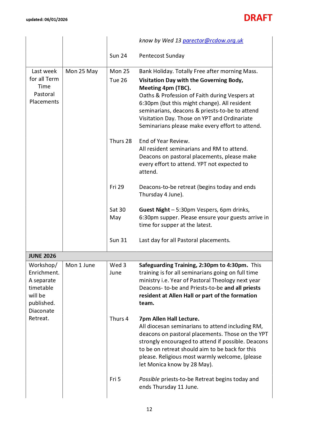 NB: Please note dates labelled TBC are pending confirmation and ordination dates are pending Orders Commissions. Please check the link and common drive for regular updates.