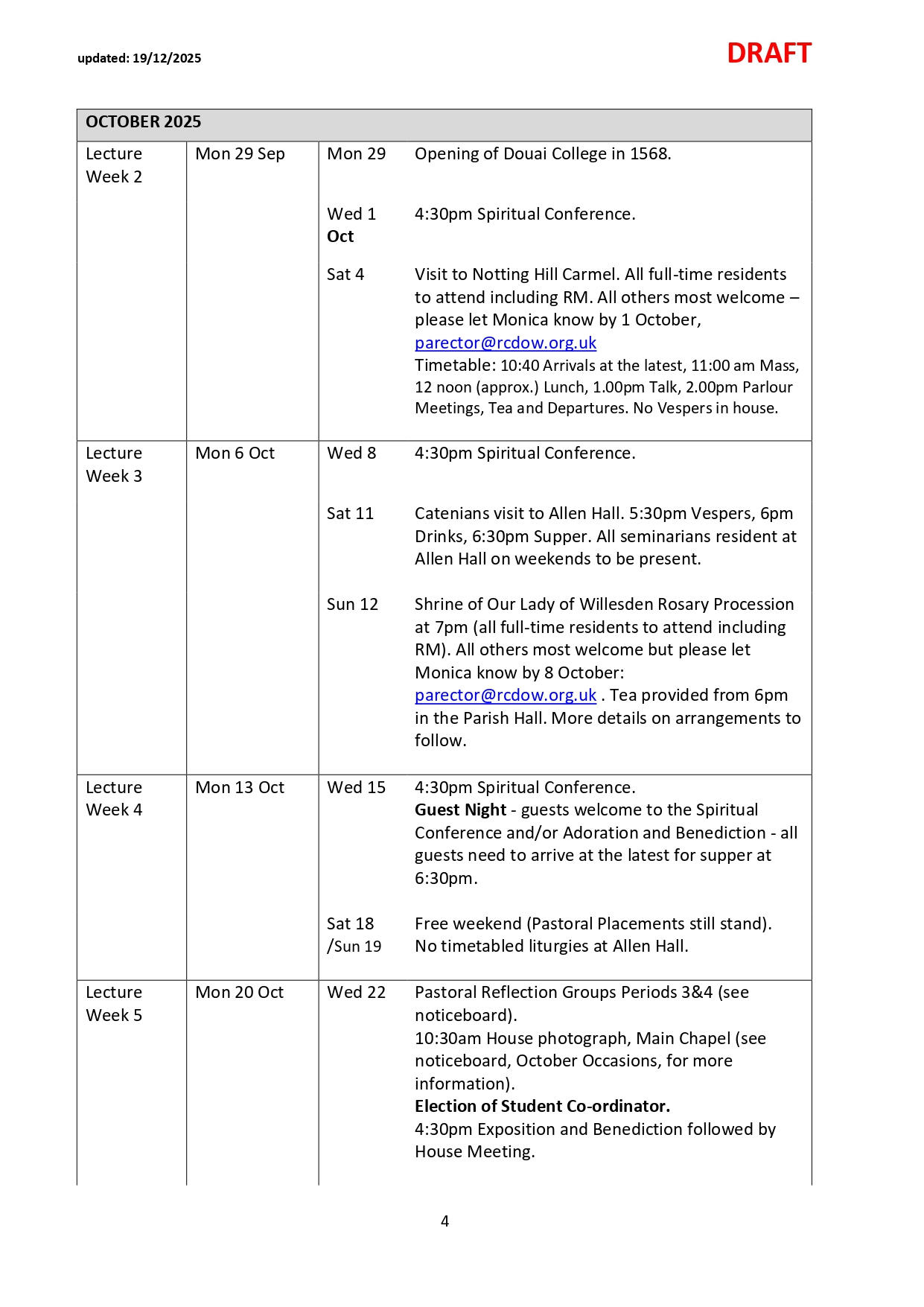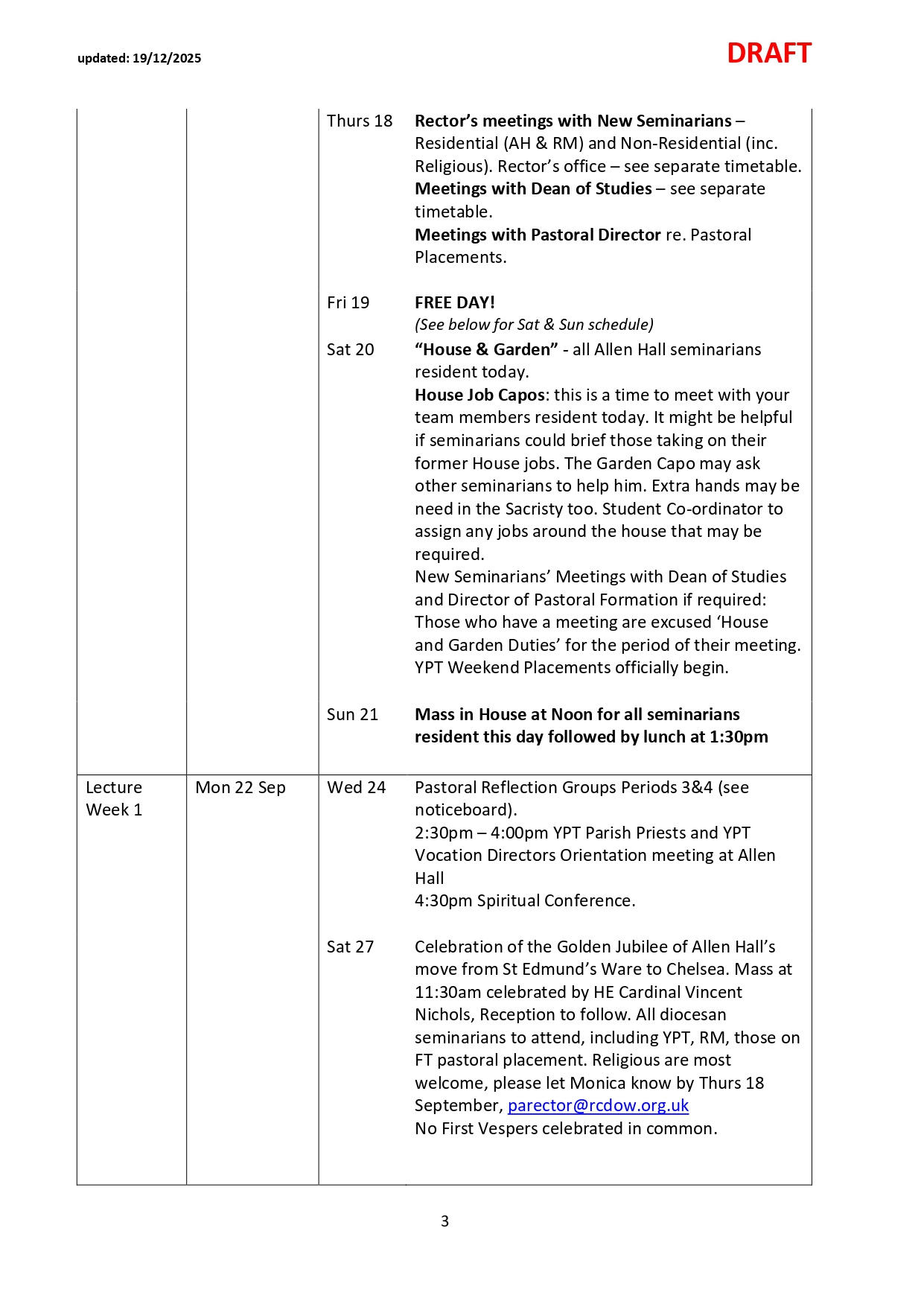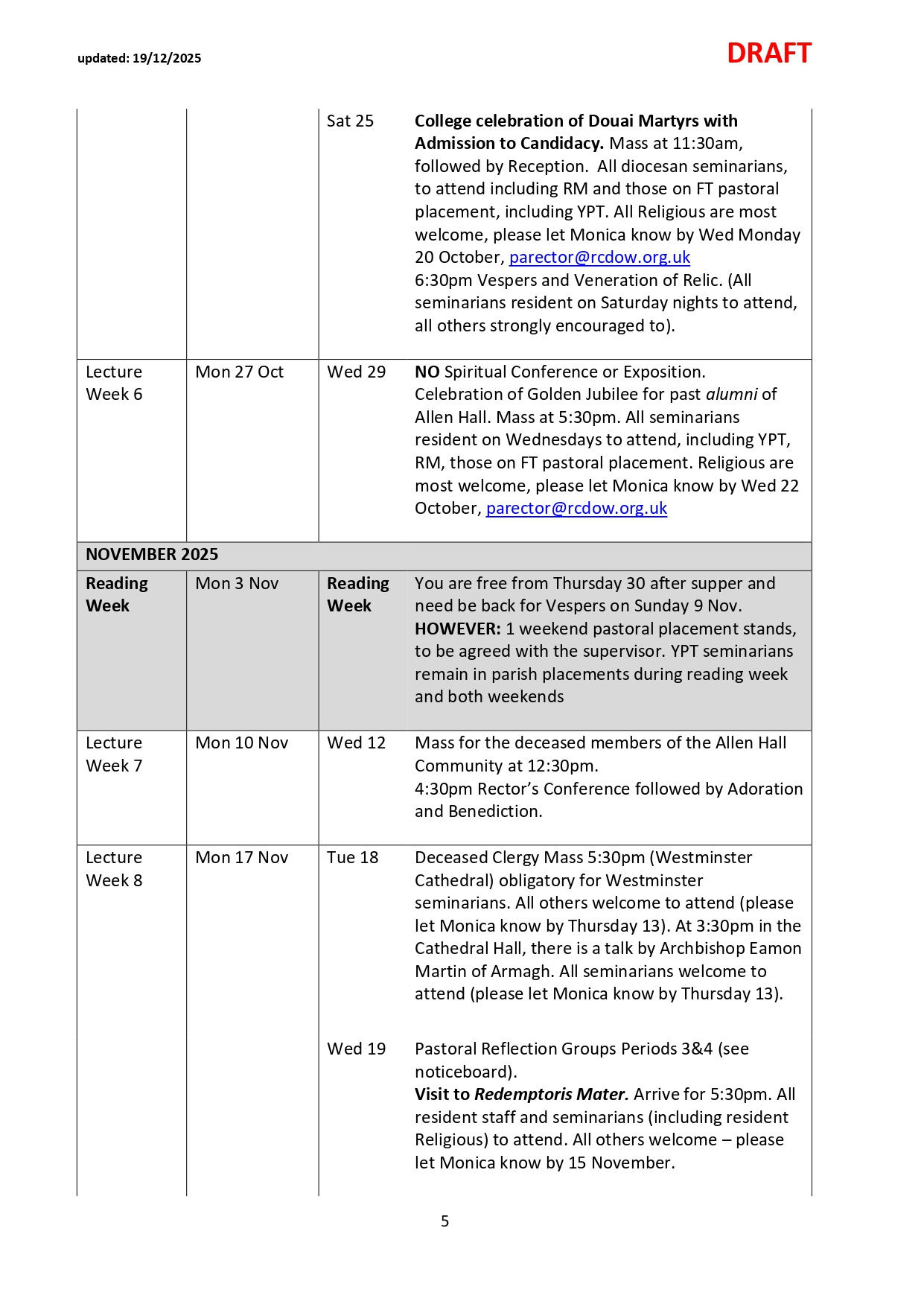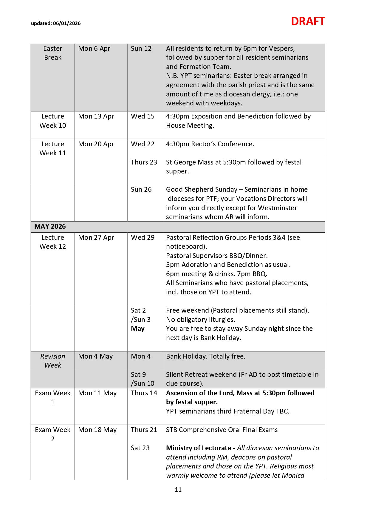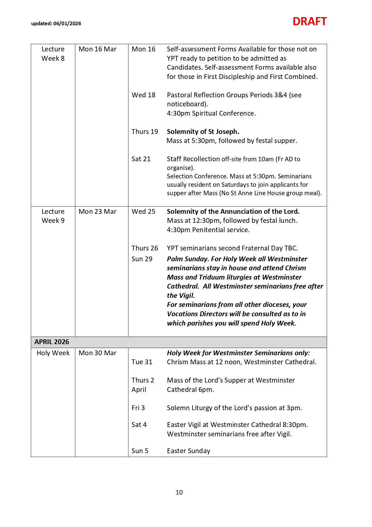 NB: Please note dates labelled TBC are pending confirmation and ordination dates are pending Orders Commissions. Please check the link and common drive for regular updates.